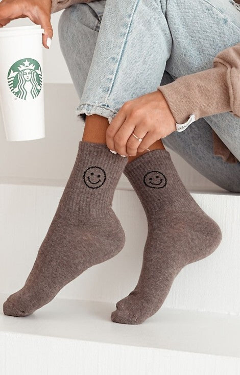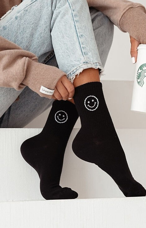 Προσθέστε θετική ενέργεια στο καθημερινό σας στυλ με αυτές τις γυναικείες κάλτσες, διακοσμημένες με ένα χαριτωμένο σχέδιο χαμογελαστής φάτσας. Κατασκευασμένες από υψηλής ποιότητας υλικά, προσφέρουν άνεση και χαλαρότητα, ιδανικές για κάθε μέρα. Διατίθενται σε γκρι και μαύρο χρώμα για να επιλέξετε το αγαπημένο σας.