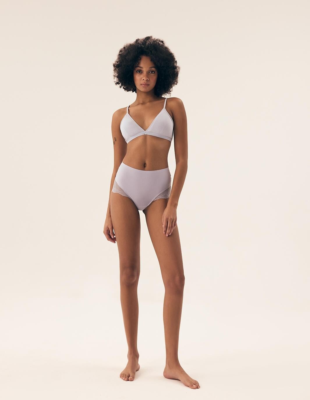 Η διακριτική, διάτρητη δαντέλα στο πίσω μέρος χαρίζει κομψότητα και ρομαντική διάθεση, ενώ το κολλητό τελείωμα στη μέση αποφεύγει τις ραφές και τα σημάδια.