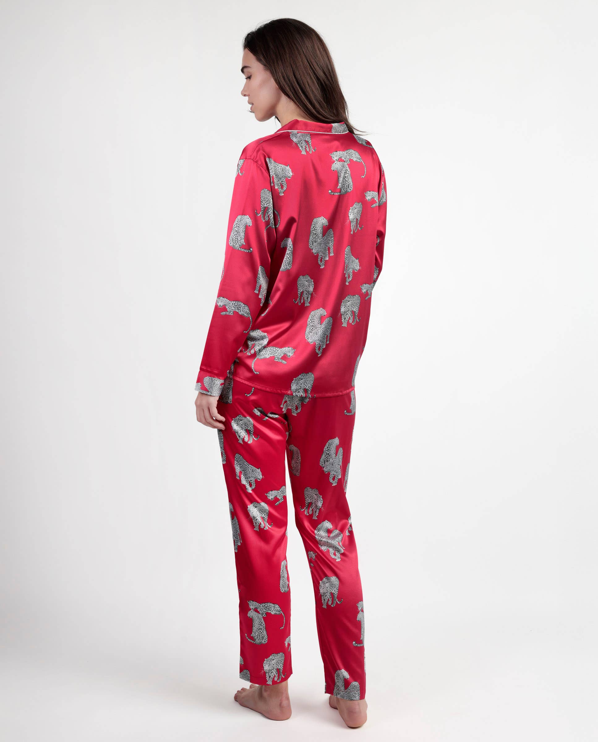 Πιτζάμα Satin Jungle Fever – Φούξια Σατέν Πιτζάμα με Κουμπιά & Μακριά Μανίκια